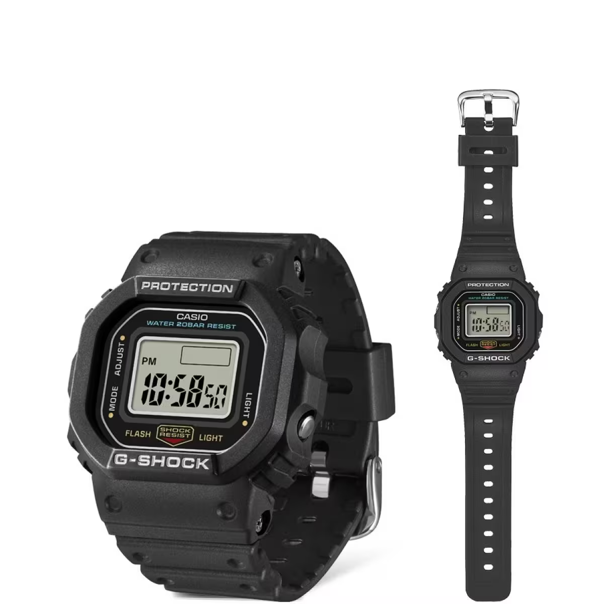 The DWN-5600 delivers the iconic G-SHOCK 5600 shape in a ring-sized watch about one-tenth the size of a regular G-SHOCK. The intricate shapes of the original bezel and band are precisely reproduced using unique molding technology. The buttons, buckle, and case back are all made with the same stainless steel as the original. Just like a regular watch, the fit can be adjusted using the holes on the strap (from approx. 48 to 82 mm).