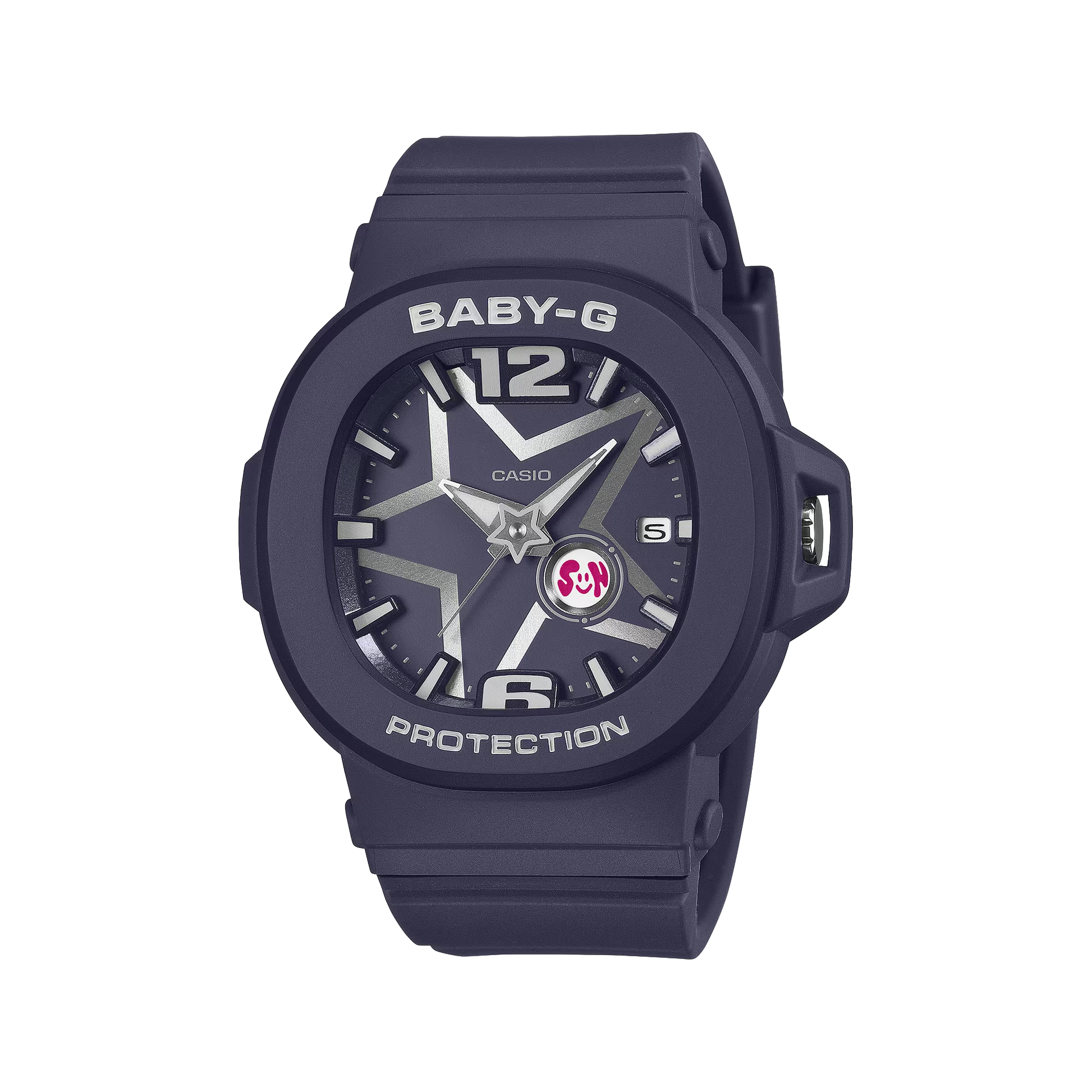 Go charmingly futuristic with twinkling Y3K styling from BABY-G. The spacey, future-forward BGD-10D dial features stars and raised indexes in metallic colors. Even the base of the watch hands takes on a star motif for an added touch of BABY-G whimsy. The day display features seven different designs with pop-inspired fonts and colors, adding a cheerful accent to your style each and every day. Beyond the playful, charming design, this watch delivers serious functionality, too — with shock-resistant construction, water resistance up to 100 meters, and more, all ready to keep up with your life adventures. Whether it’s sports, recreation, or everyday fun, these BABY-G watches keep you reaching for the stars.