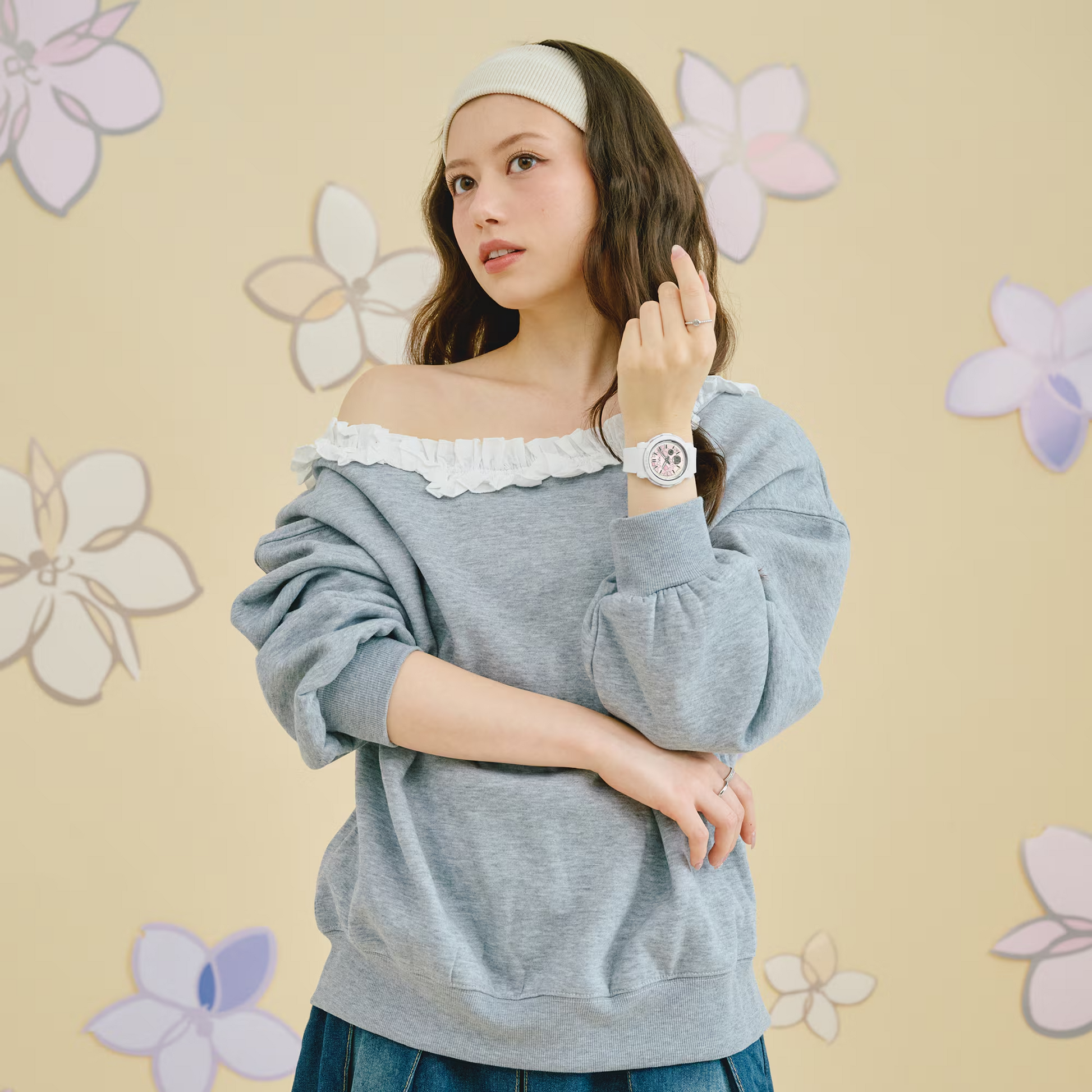 Casually stylish, actively tough — a shock-resistant BABY-G dressed in delicate flowers, pretty and powerful. The BGA-290, with round case and wide face for optimal readability, features a dial adorned with an elegant flower design, lending a touch of glamor to your wrist. A crystal at the center of the flower at the 9 o’clock index adds sparkle, while the bezel ring’s vapor deposition finish brings in a beautiful metallic texture. When it comes to function, the BGA-290FL delivers shock-resistant construction, 100-meter water resistance to free you from worry when swimming, and more.