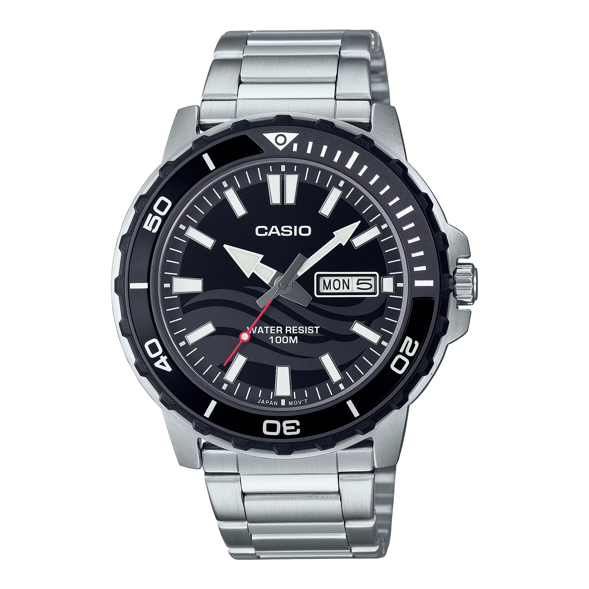 The CASIO ANALOG MENS WATCH MTD-125D-1A1VDF is the perfect choice for water lovers and marine sports enthusiasts. With a 100-meter water resistance and a practical day and date display, this sleek and sporty watch is designed to keep up with your active lifestyle. Stay on top of your game with this reliable timepiece.