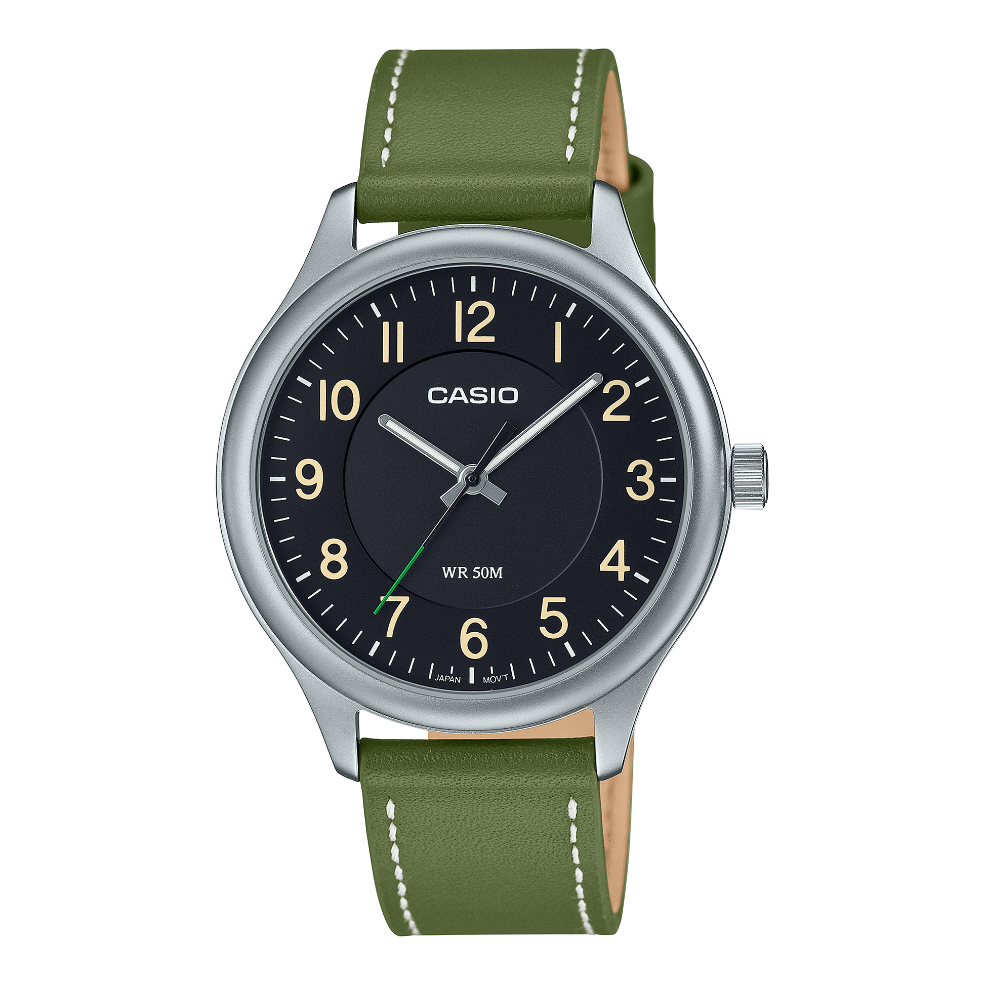 Elevate your style with the CASIO ANALOG MENS WATCH MTP-B160L-1B1VDF. Its timeless design, featuring hour, minute, and second hands, blends classic and casual elements. Perfect for the outdoors, with a water resistance of up to 50 meters. Don't let rainy days hold you back.