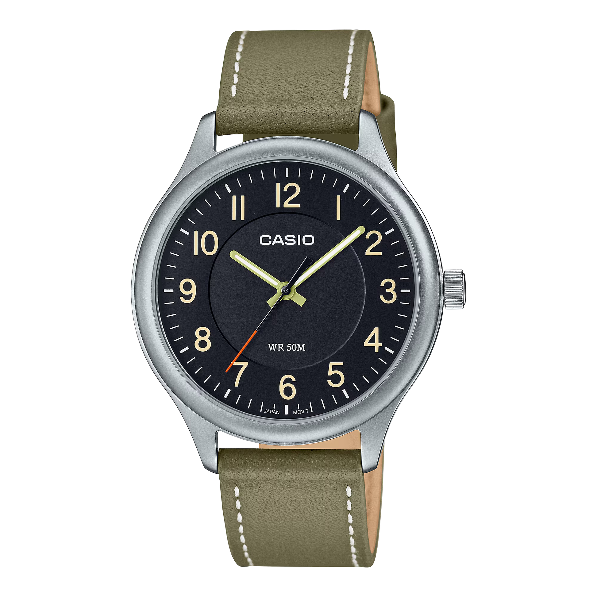 Elevate your style with the CASIO ANALOG MENS WATCH MTP-B160L-1B2VDF. Perfect for both formal and casual wear, this timepiece features a classic analog display with hour, minute, and second hands. The durable leather band and earthy colors make it perfect for any outdoor adventure. With water resistance up to 50 meters, you can wear it worry-free on rainy days.