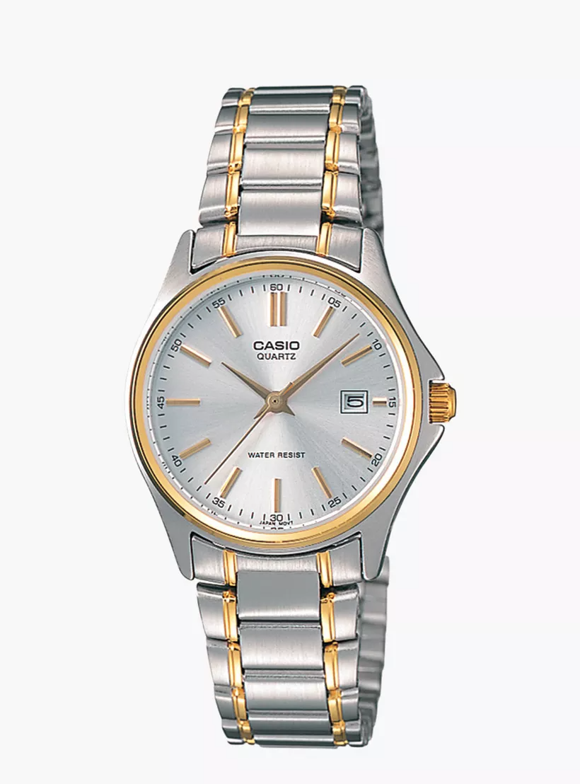 This elegant CASIO ANALOG WOMENS WATCH LTP-1183G-7ADF is a perfect blend of style and functionality. With its sleek design and reliable analog movement, it is both fashionable and accurate. Made with high-quality materials, it is also durable and long-lasting. Elevate your outfit with this timepiece.