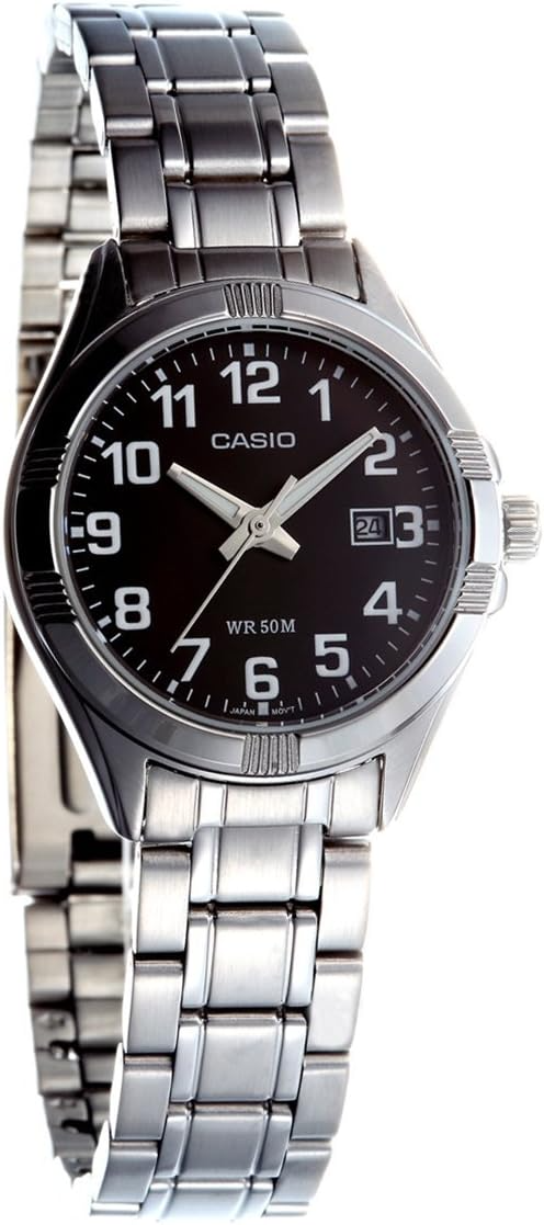 As a stainless-steel women's watch, the LTP-1308D-1BVDF by CASIO is built to withstand regular use without losing its polished appearance. Additionally, its water-resistant feature ensures reliability in wet conditions. A perfect blend of style and functionality.