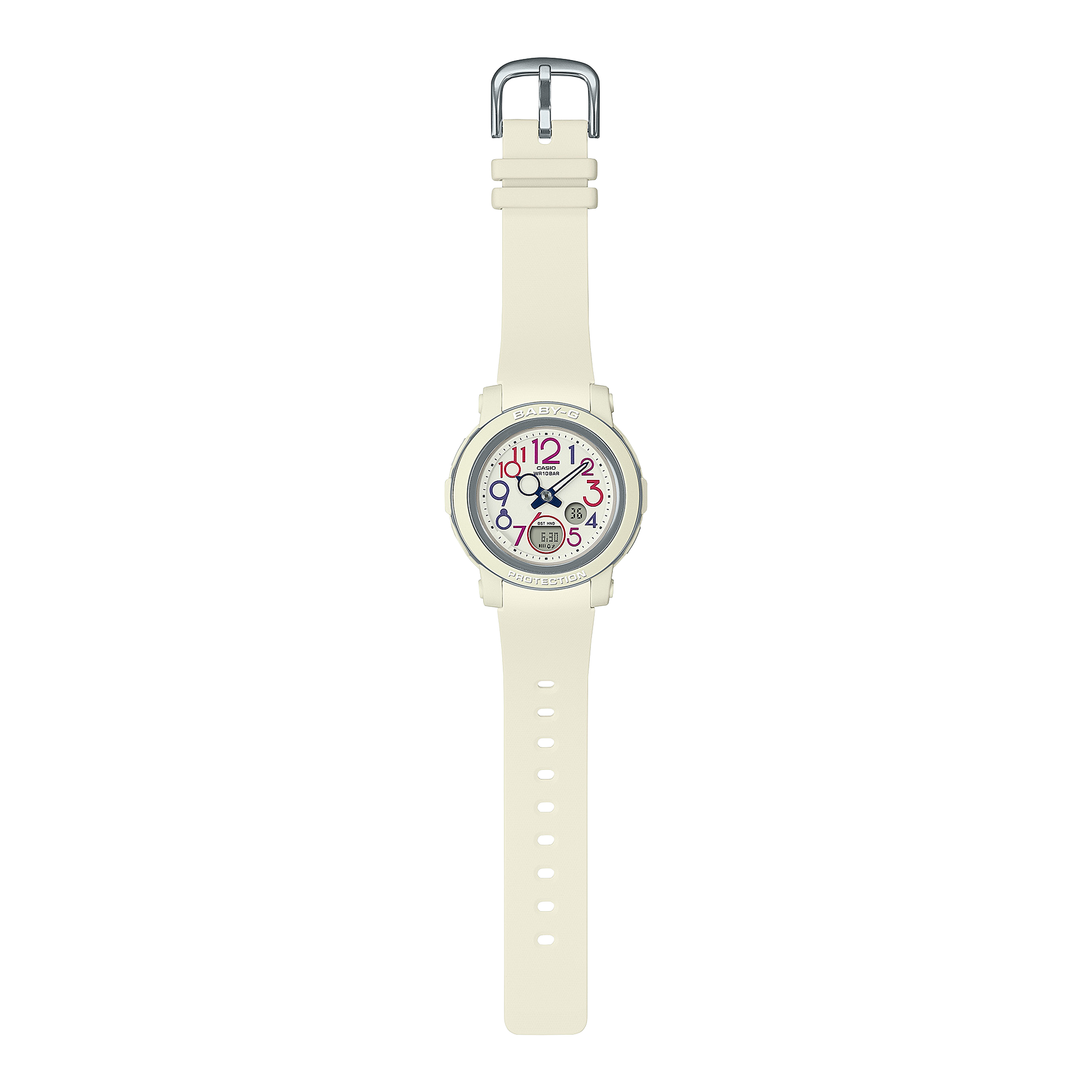 Celebrate retro style with the BABY-G CASUAL WOMEN WATCH BGA-290PA-7ADR, inspired by vibrant 70s and 80s fashion. Featuring a distinctive round case and a wide, easy-to-read face, this watch showcases playful pop-font indexes and multi-colored numbers for a charming vintage look. The ring-motif hour hand adds a unique touch, while BABY-G’s shock-resistant build and 100-meter water resistance ensure durability and practicality for everyday wear, including swimming. This watch perfectly balances nostalgic design with reliable performance.