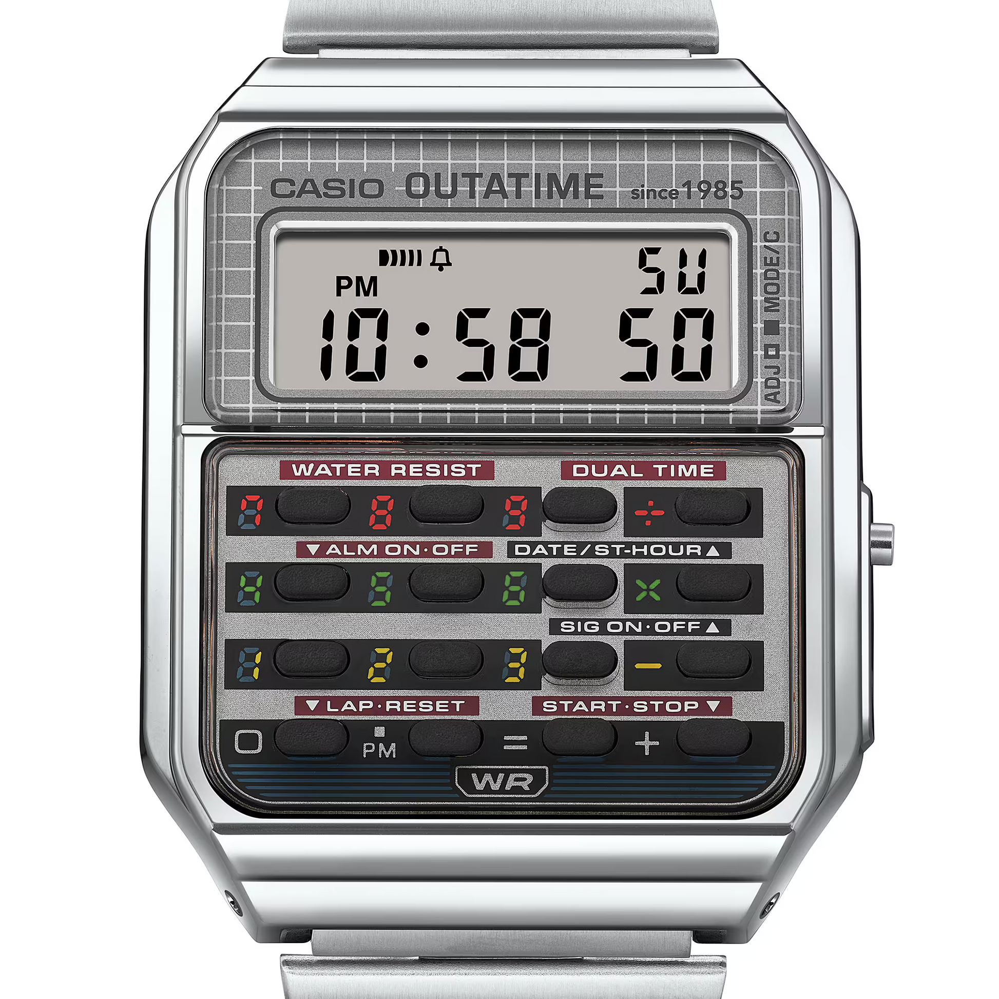 Time travel in contemporary vintage style! Introducing a dream collaboration between Casio Vintage and Back to the Future. 2025 marks the 40th anniversary of the release of Back to the Future, and timeless icon Casio Vintage helps celebrate with a very special watch that embodies this classic futuristic adventure. The CA-500, the ever-popular Casio calculator model, as loved now as it was in the 1980s, takes on a Back to the Future DeLorean theme. The different colors around the buttons evoke the DeLorean’s time circuits for setting the destination date and time, transporting you into the world of the film every time. The case back is engraved with the flux capacitor, the iconic piece of fictional technology that turns the DeLorean into a time machine. This singular collaboration is packed with meticulous details, like the Back to the Future logo on the band buckle, that will thrill the film’s fans. Yet the silvery case and band deliver a refined look as welcome in the office as the movie theater. The watch comes in special packaging designed to look like a vintage videotape, capturing the world of the film — a very special item worthy of any collection. Transport yourself to the Back to the Future world with a touch of subtle playfulness that adds a sense of playful adventure to your minutes, hours, and days. Back to the Future Released in 1985, the sci-fi classic Back to the Future celebrates its 40th anniversary in 2025. Directed by Robert Zemeckis, with Steven Spielberg as executive producer, the film tells a humorous and thrilling story of time travel and familial love. In this timeless classic beloved by all ages, the protagonist Marty McFly, played by Michael J. Fox, boards a time machine built by the genius scientist Doc, portrayed by Christopher Lloyd. The audience watches, rapt and thrilled, as Marty journeys “back to the future,” racing against time to restore the future he once knew. Today, 40 years later, this enduring classic still stands the test of time, carrying a timeless message and hope for the future.
