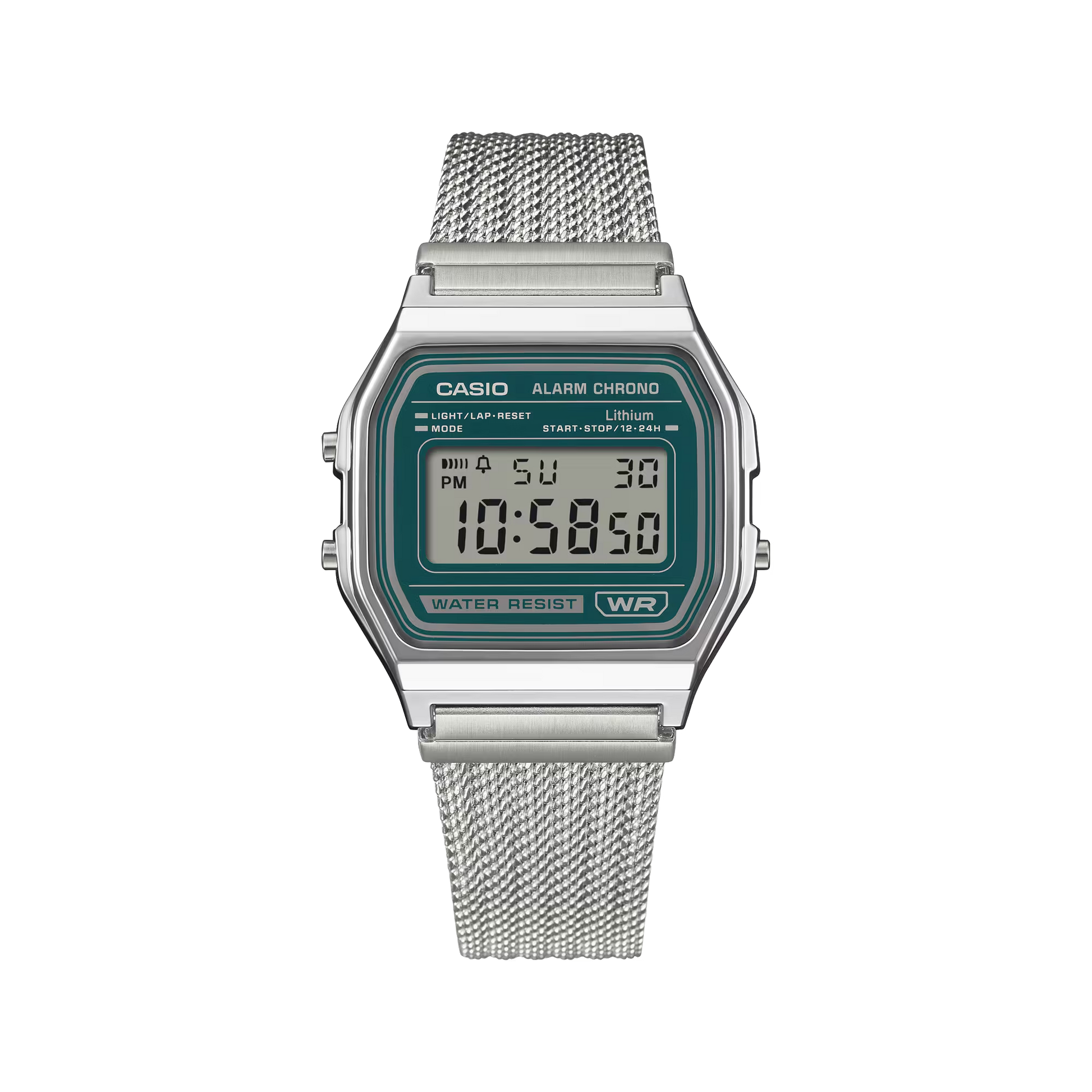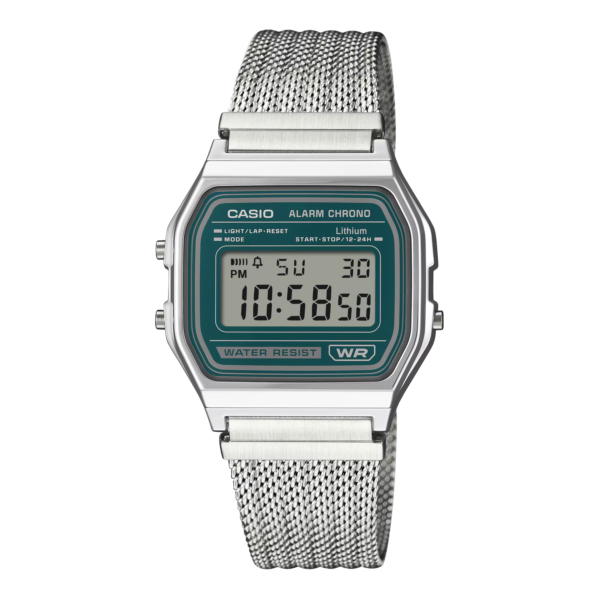 An updated take on a favorite classic — the ever-popular, easy-to-use A158 goes stylishly elegant with a fine-woven mesh band. Treated with a specialized pressing process that adds depth and dimension, the mesh band delivers a refined, vintage look and a totally comfortable fit for your wrist. Choose a dial in dark green or light gray. The silver-colored case and contrasting dial present an understated color scheme that adds a simple yet original touch to your style. These classic designs highlight the beauty of metal mesh for a refined and elegant presence all their own.