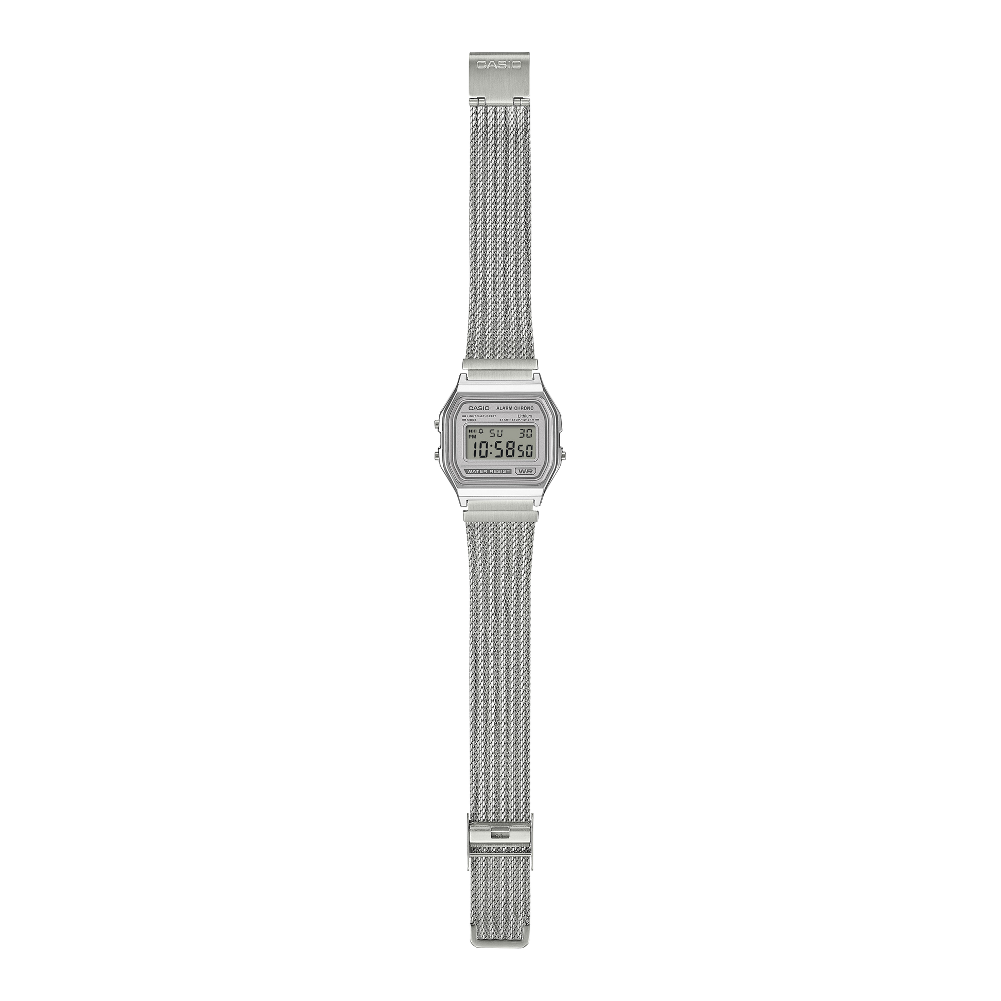 An updated take on a favorite classic — the ever-popular, easy-to-use A158 goes stylishly elegant with a fine-woven mesh band. Treated with a specialized pressing process that adds depth and dimension, the mesh band delivers a refined, vintage look and a totally comfortable fit for your wrist. Choose a dial in dark green or light gray. The silver-colored case and contrasting dial present an understated color scheme that adds a simple yet original touch to your style. These classic designs highlight the beauty of metal mesh for a refined and elegant presence all their own.