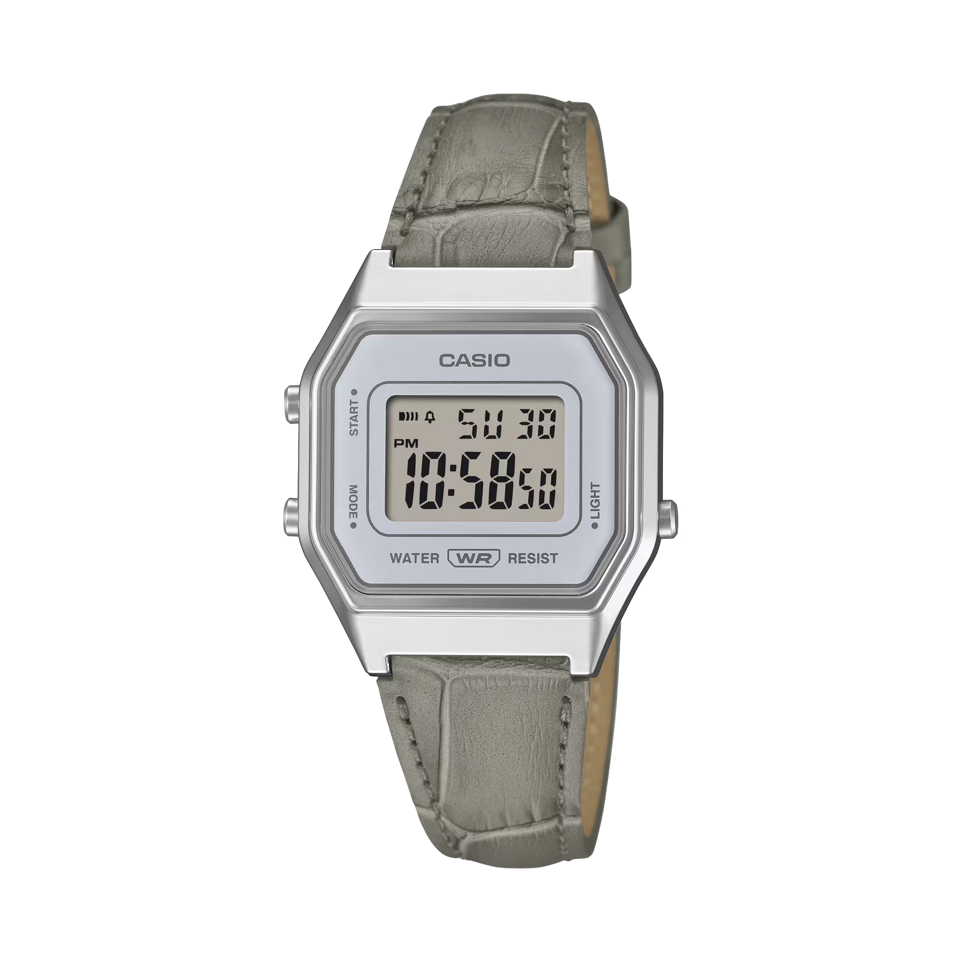 The CASIO LA680WEL-8A2DF merges retro aesthetics with contemporary sophistication. This digital timepiece features a streamlined face that captures vintage luxury through its refined proportions and soft, muted color palette. The embossed leather band delivers tactile elegance, while the silver-toned case complements the gentle hues of the dial for a cohesive, understated look. Ideal for those who appreciate timeless design with functional digital precision, this unisex watch transitions seamlessly from casual to refined settings. A statement piece that whispers rather than shouts, embodying the enduring appeal of classic watchmaking.