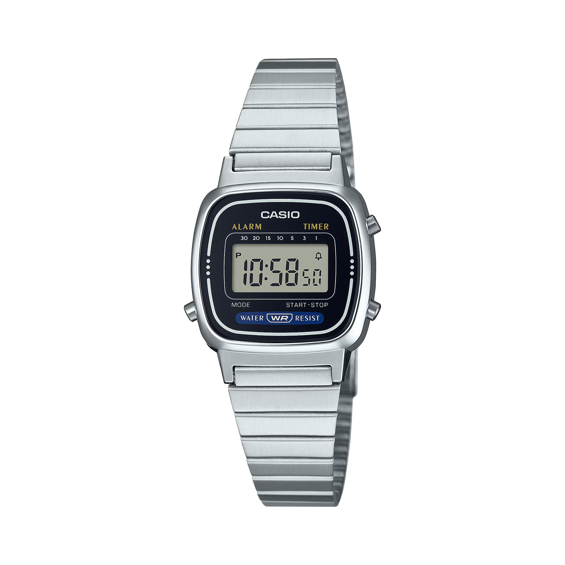 The CASIO Vintage Women Watch LA670WD-1DF combines practicality with style. With its water-resistant feature, you can wear it worry-free in any weather. Its popular retro design adds a touch of nostalgic charm. Plus, never miss an important event with its built-in alarm. A must-have for any fashion-forward and on-the-go woman.