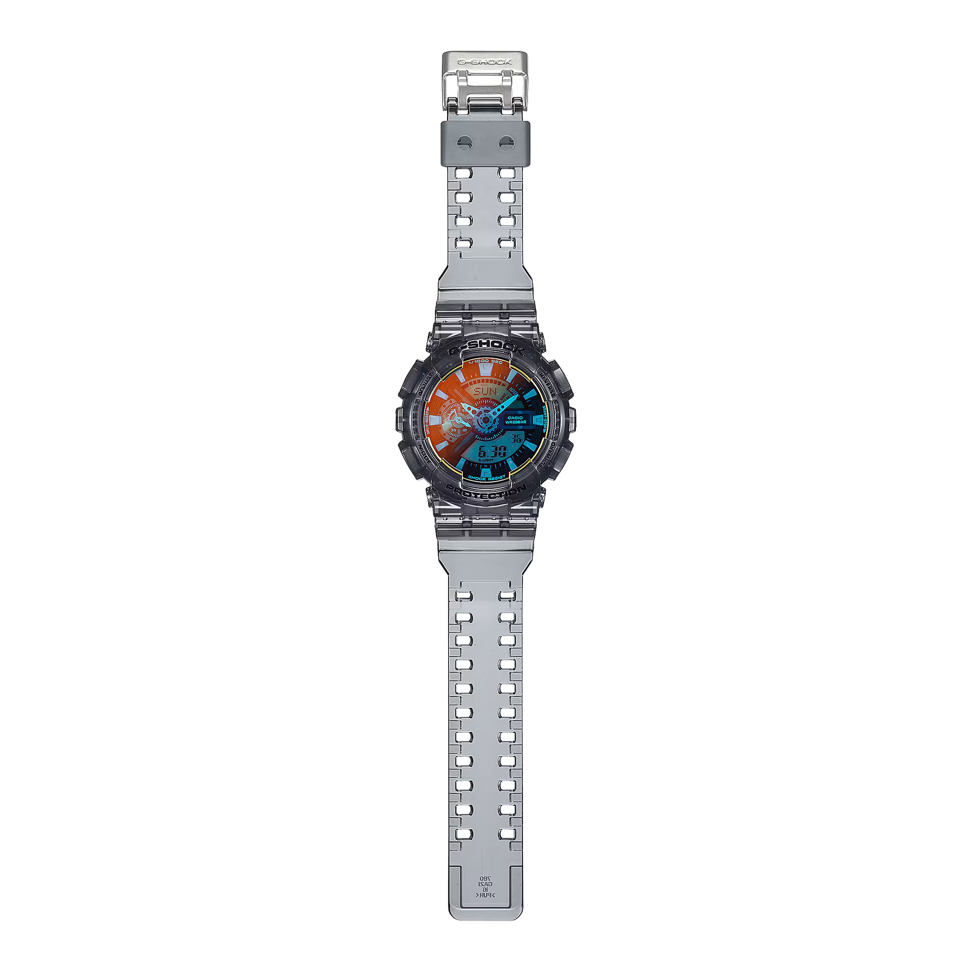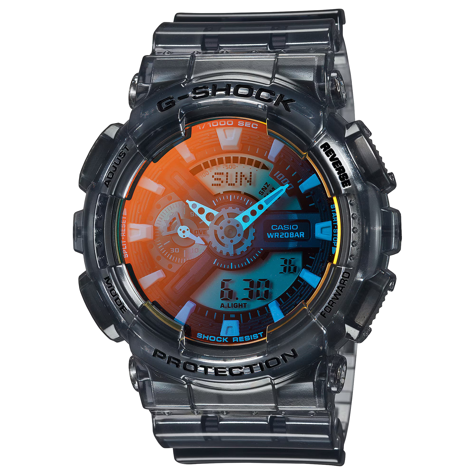 Enhance your fashion with the G-SHOCK ANALOG-DIGITAL MEN'S WATCH GA-110TLS-8ADR. Utilizing a specialized vapor deposition technique, this watch reflects varying shades of light, encapsulating the essence of the coast. Select from two beach-themed color options and classic G-SHOCK silhouettes for a distinct appearance. Embrace self-expression with vibrant hues in a classic design.