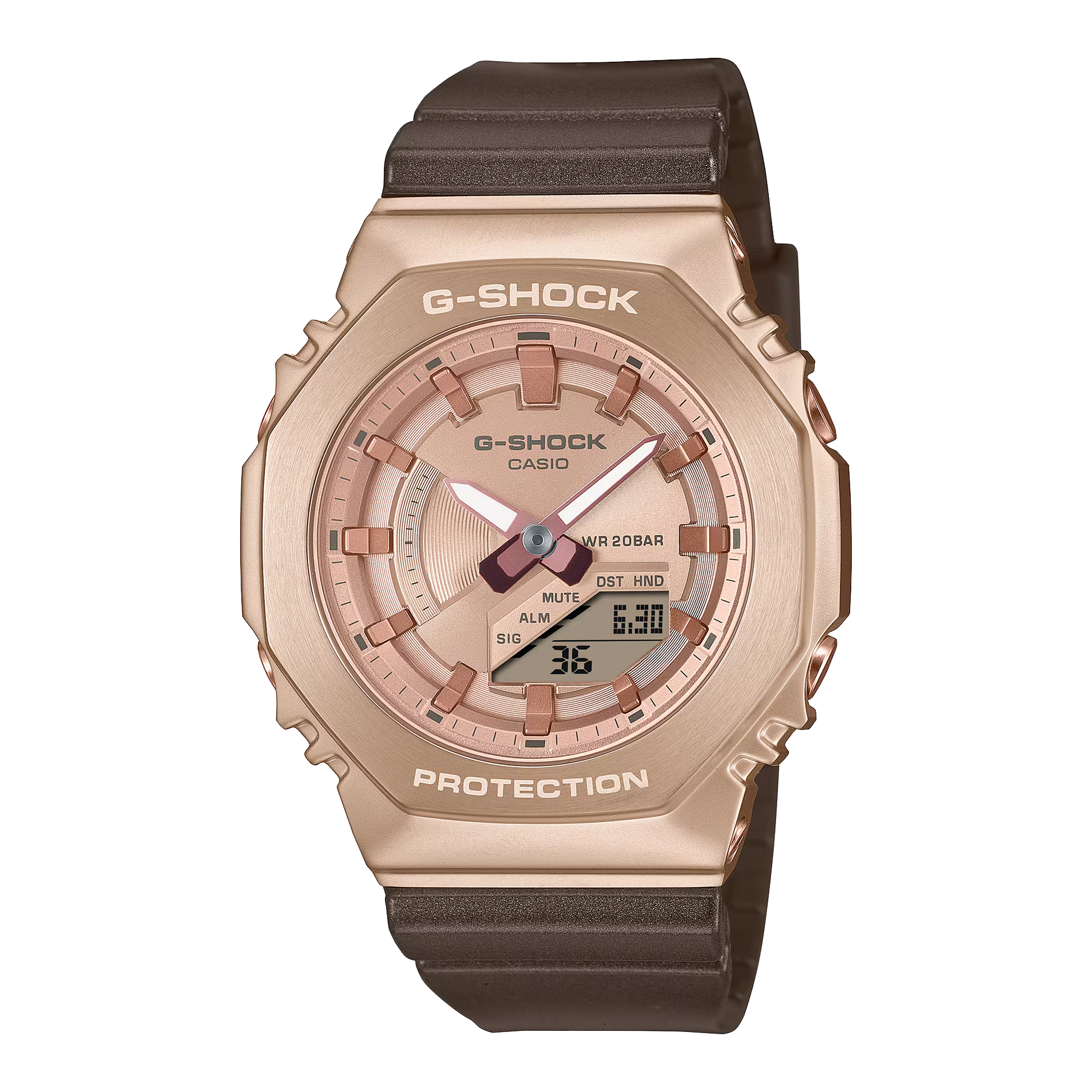 Indulge in luxury with the G-SHOCK ANALOG-DIGITAL WOMEN'S WATCH GM-S2100CB-5ADR. Its compact, metal-clad design in peach gold exudes elegance and sophistication while complementing skin tones. The pearlescent toned band and hairline finish bezel add a touch of luxury to this subtle, yet stunning timepiece.