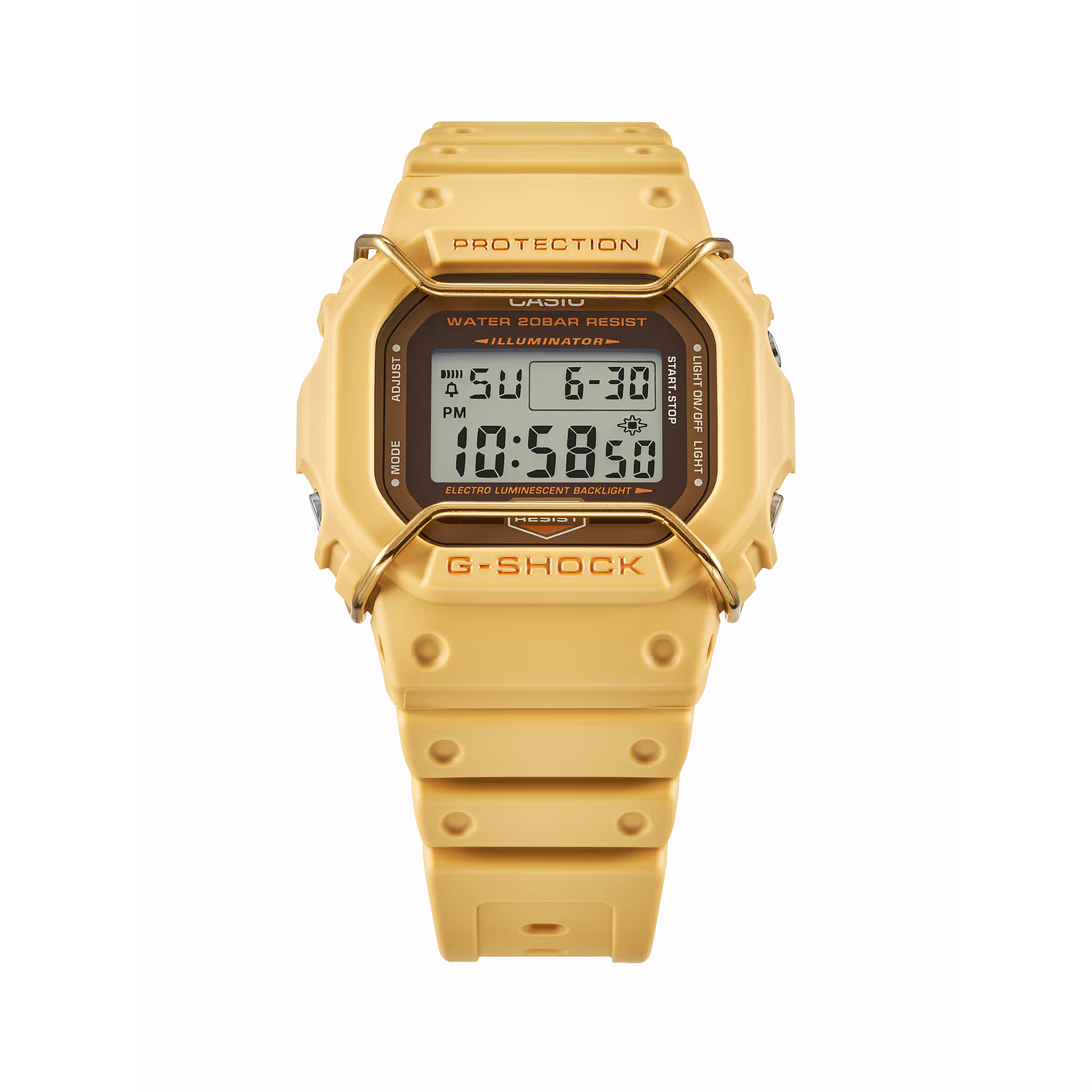 The G-SHOCK Casual Men Tone on Tone Watch DW-5600PT-5DR combines rugged durability with refined style, featuring a matte finish in natural hues enhanced by metallic face protectors that match the monochromatic palette. This model introduces wire face protectors, a first for the 2100 line, adding subtle yet distinctive protection. Its angular design offers a contemporary look suited for everyday wear, making it an ideal choice for those who appreciate both function and fashion in a timeless timepiece.