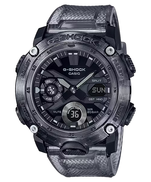 The G-SHOCK GA-2000SKE-8ADR combines durability with modern design, crafted from robust translucent resin for lasting wear. Its sleek gray skeleton finish highlights the innovative carbon-core guard structure, enhancing both strength and style. This watch offers a sporty yet refined look, ideal for men seeking a reliable timepiece that complements any casual outfit with expert craftsmanship.