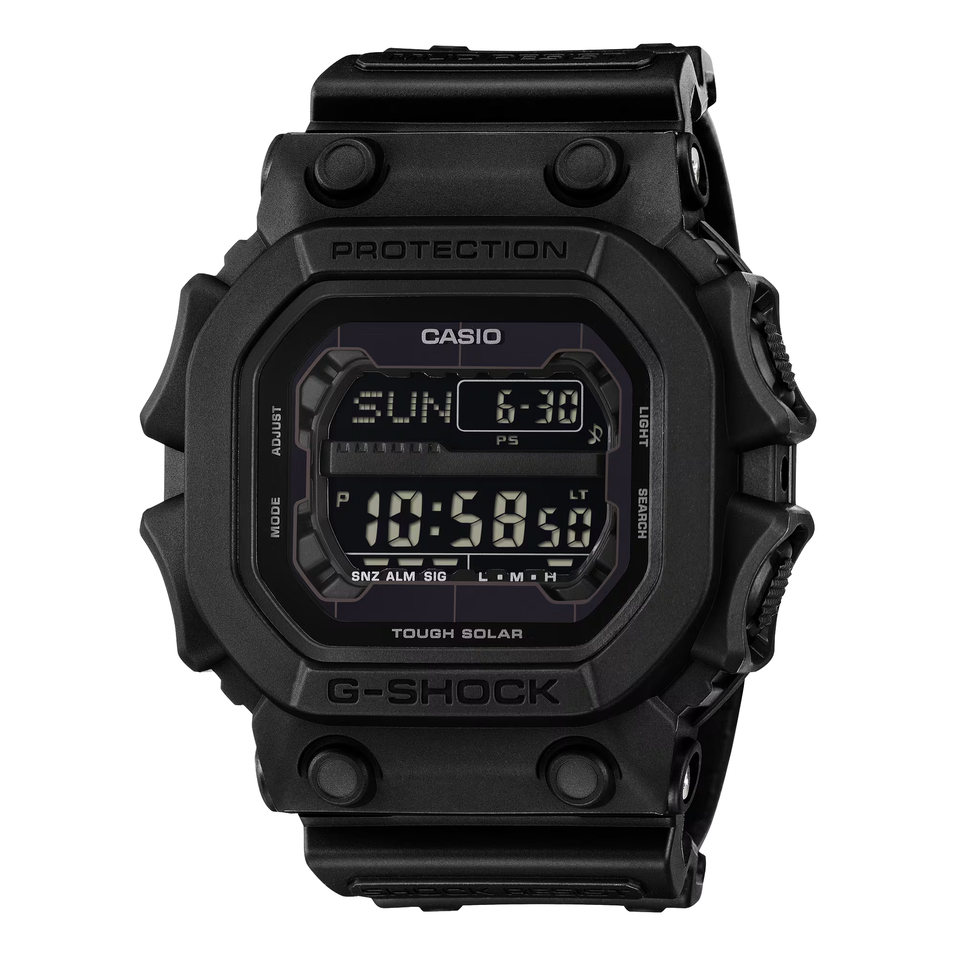 Command the moment with the G-SHOCK GX-56UBB-1DR, a timepiece engineered for uncompromising durability. Its distinctive angular form absorbs impact from every direction, while the all-black matte finish accentuates the watch's bold geometric architecture. The high-brightness LED backlight cuts through darkness, delivering reliable visibility whenever you need it. Built for those who demand performance without compromise, this digital watch combines tactical design with G-SHOCK's legendary shock resistance.