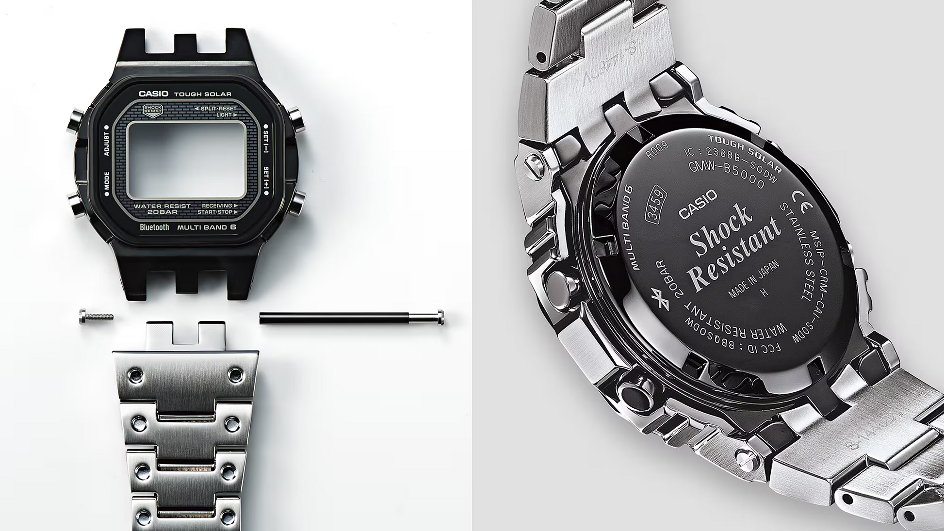Experience the evolution of an icon with the GMW-B5000BT-1DR, a full-metal G-SHOCK that honors the legacy of the original while delivering contemporary sophistication. This striking timepiece features a mirror-finished stainless steel bezel paired with silver-vapor-deposited watch glass, creating a distinctive two-tone black-on-silver aesthetic. Meticulously forged, cut, and polished, the bezel showcases exceptional depth and dimension. Built to withstand the demands of daily wear, this watch combines G-SHOCK's legendary shock-resistant engineering with refined craftsmanship, making it an ideal choice for those seeking durability without compromising on style.