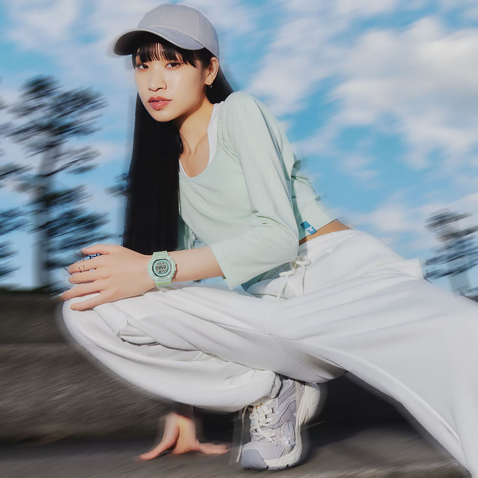 The G-SHOCK G-SQUAD WOMEN WATCH GMD-B300-3DR combines durability with smart functionality for active lifestyles. This sports-oriented timepiece features an integrated step tracker with automatic motion-sensing technology that monitors daily progress toward fitness goals. Data syncs seamlessly with a dedicated app for comprehensive life logging. The watch showcases a sophisticated matte finish with light accent colors in a stylish color block design, complemented by a sportswear fabric pattern dial. Environmentally conscious construction incorporates bio-based resin for key components, merging sustainability with G-SHOCK's legendary toughness and reliability.