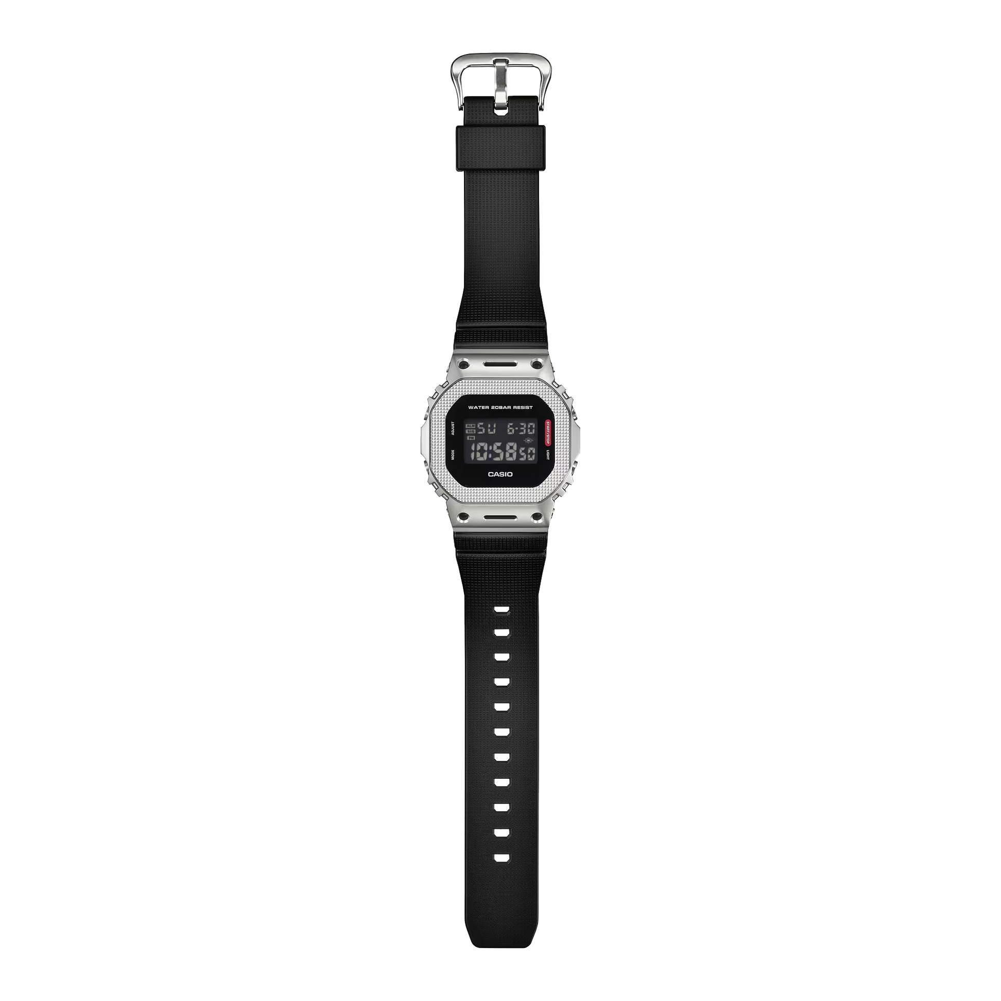Streamlined design, striking functional beauty, shock-resistant construction — a toughness-driven G-SHOCK with a monochromatic modern industrial look. The digital GM-5600, with iconic shape and metal bezel, and the analog-digital combination GM-2100 take on an achromatic color scheme that highlights the chic beauty of simplicity and functionality. The textured pattern of the metal bezel and the touch of red for the function label, symbolizing G-SHOCK dedication to total toughness, showcase pure functionality in design. The bezel’s unique form features openings that allow the center case inside to show through, flaunting the core technology of G-SHOCK: its shock-resistant structure. For the GM-5600BM and GM-2100BM, black ion-plating is applied to all bezel components other than the top surface, adding depth and solidity to the bezel and amplifying the chic, unified look. Delivering both streamlined, universal design and practical utility, this is a timepiece to enjoy for years to come.