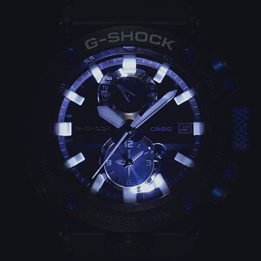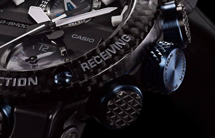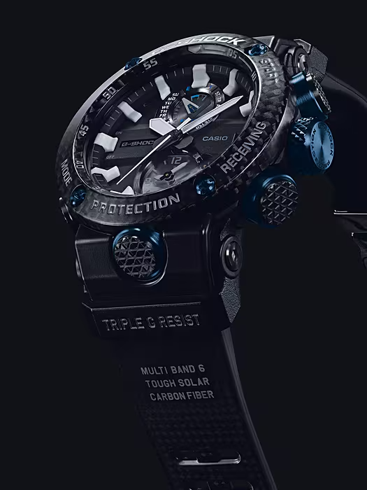 Experience next level toughness with the G-SHOCK MASTER OF G GRAVITY MASTER GWR-B1000-1A1DR. Designed for pilots and featuring a Carbon Core Guard structure, this watch is shock resistant and lightweight. The carbon and titanium materials make it durable and rust resistant, perfect for any extreme environment.