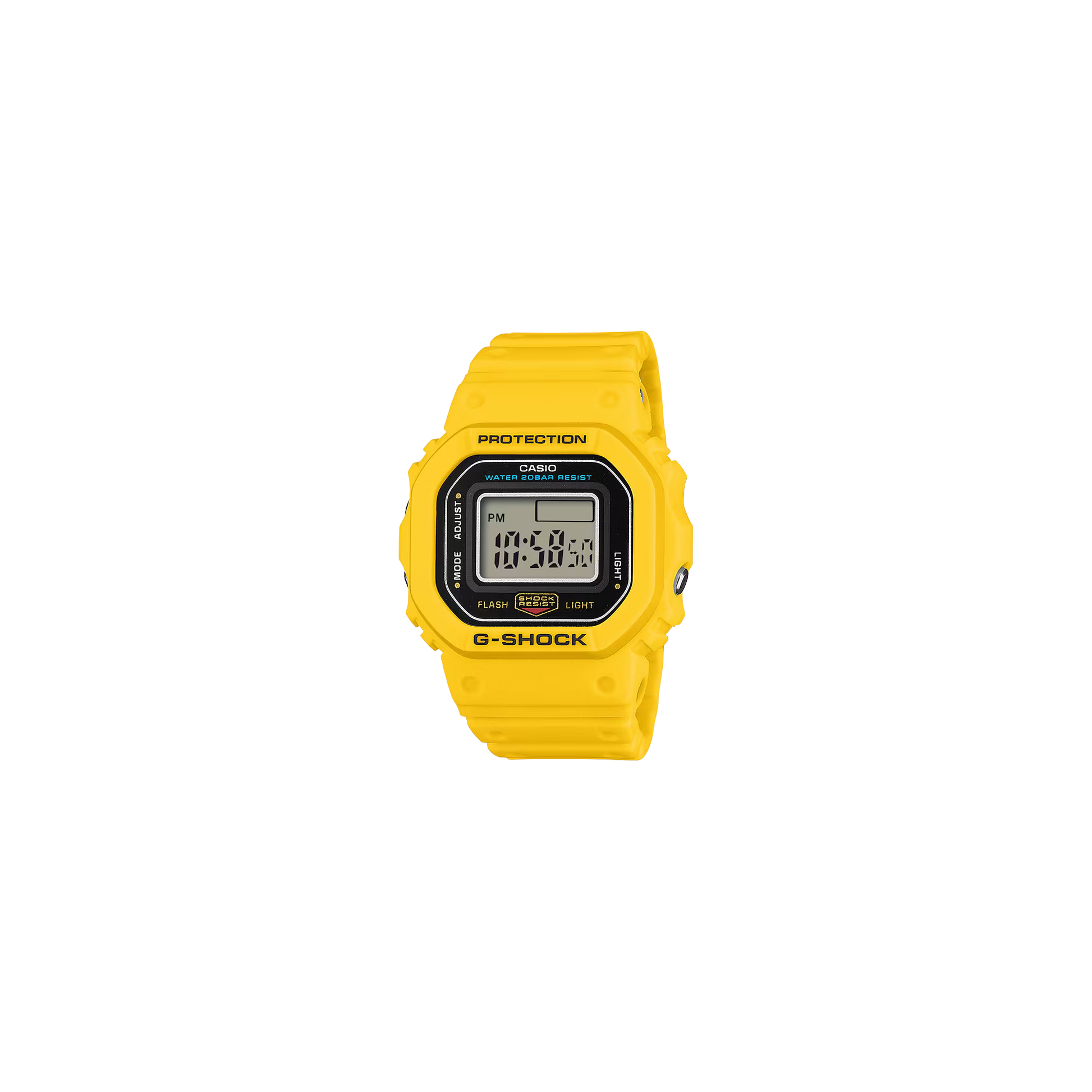 Introducing the G-SHOCK nano, a miniature, finger-fit re-creation of the iconic DW-5600 at about one-tenth the size. Delivering impressive detail — from side buttons, to buckle to LCD, all precisely reproduced using advanced molding techniques in a form so compact it comfortably fits on your finger. Shock resistant and water resistant up to 20 bar, this ring-sized watch performs with the toughness of a full-on G-SHOCK,while still allowing the battery to be replaced. Even at this small size, the LCD presents all the info you need — hours, minutes, and seconds, as well as dual time, stopwatch, and auto calendar. A soft, flashing light activates at your chosen time, adding a subtle and emotive glow. The bezel and band are made with bio-based resin, reflecting a commitment to environmental sustainability. Choose your favorite of the three most popular colors in DW-5600 history — black, yellow, or red. Each G-SHOCK nano comes in a special package with a dedicated silicone stand, for a timepiece that’s infinitely wearable and collectible.