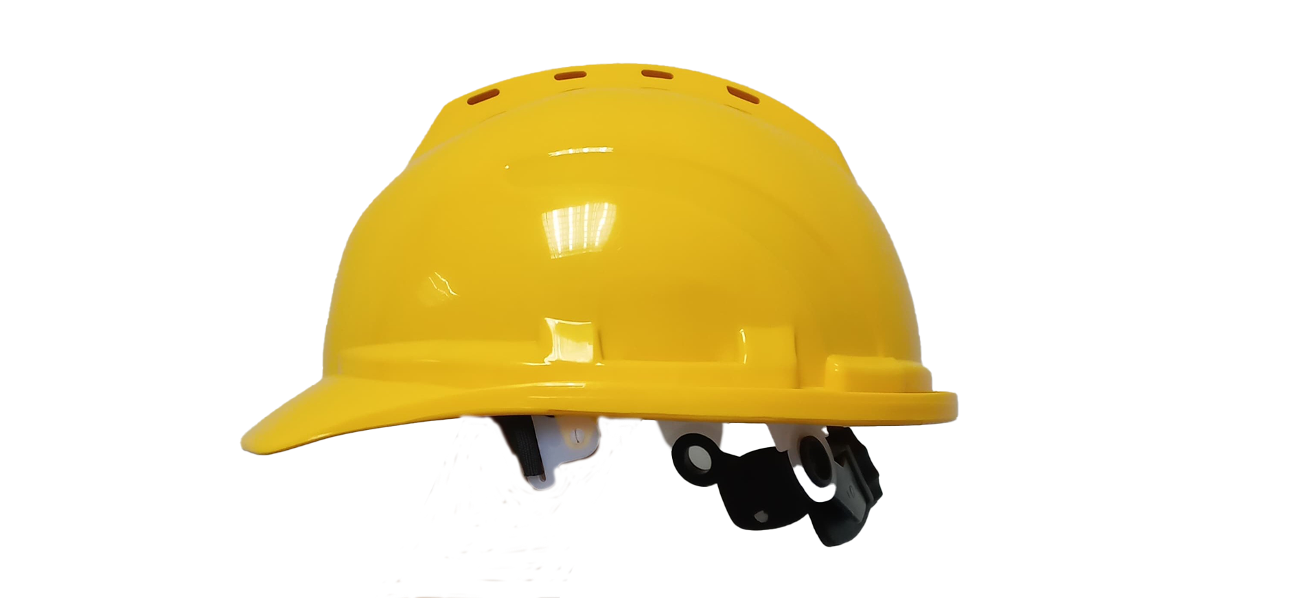 This HM012-YLW RACHET TYPE SAFETY HELMET is designed for maximum safety on the job. The blue inner plastic provides a sturdy and comfortable fit while the vibrant yellow color ensures visibility. With a rachet type design, this helmet can easily be adjusted for a customizable fit.
