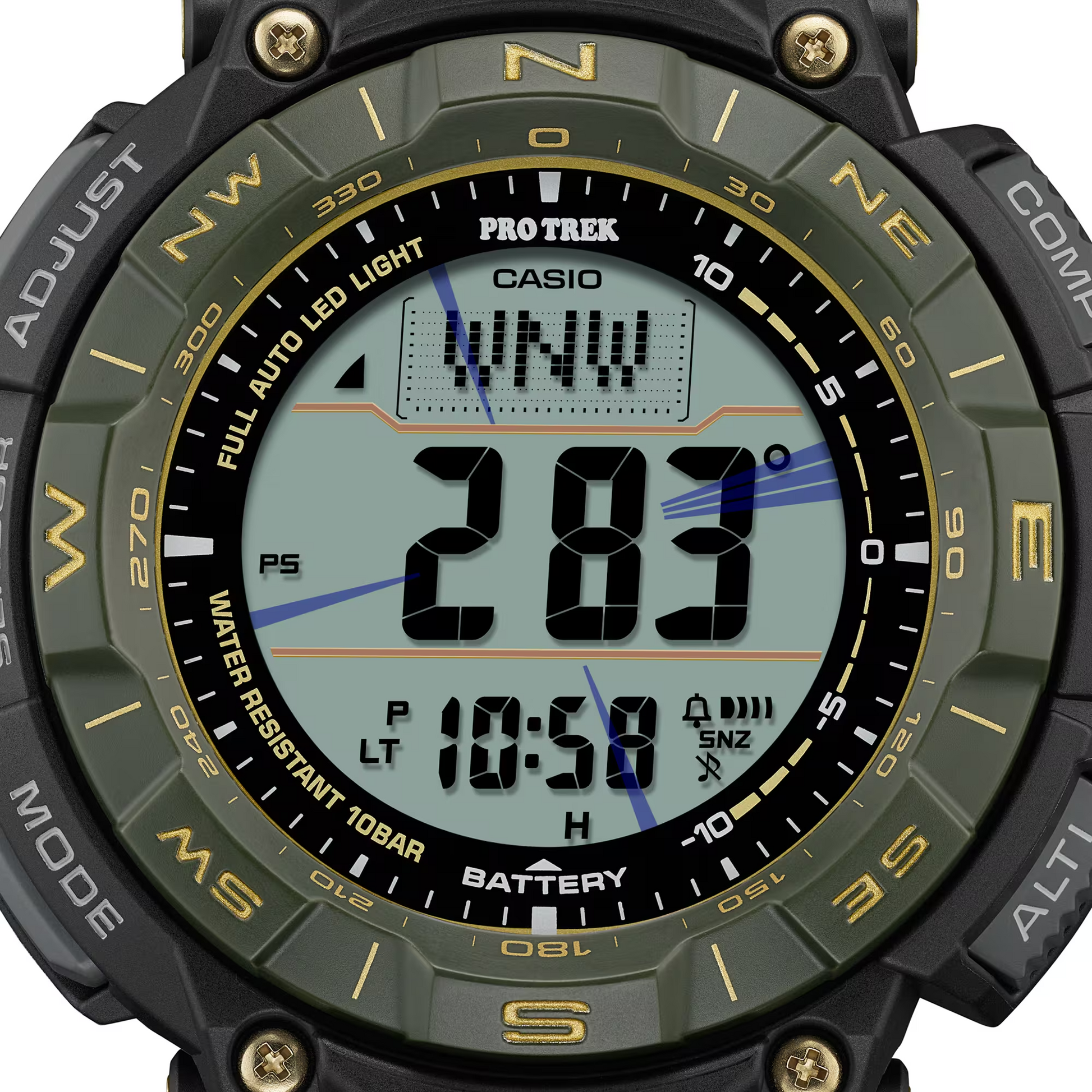 The LCD features dual-layer construction and displays compass graphics on the top layer and time and other readings on the layer below. Thanks to a slimmed-down LCD display, all of this functionality is delivered in a slim, compact case design.