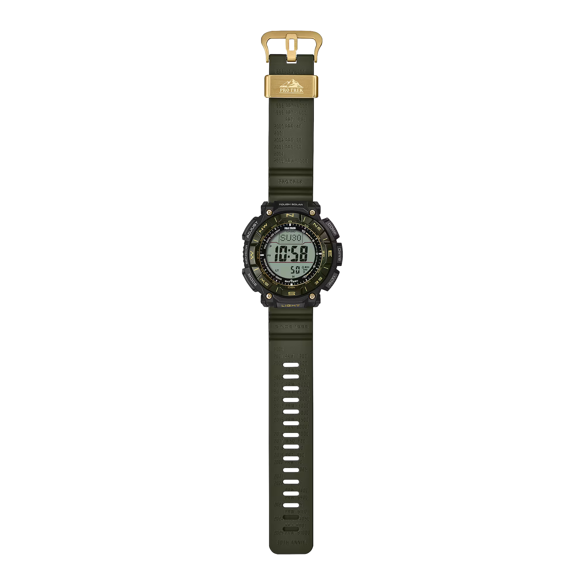 Packed with technology and embodying the philosophy that makes PRO TREK timepieces such a reliable partner for outdoor adventurers, this 30th anniversary model is designed to enhance your outdoor lifestyle.