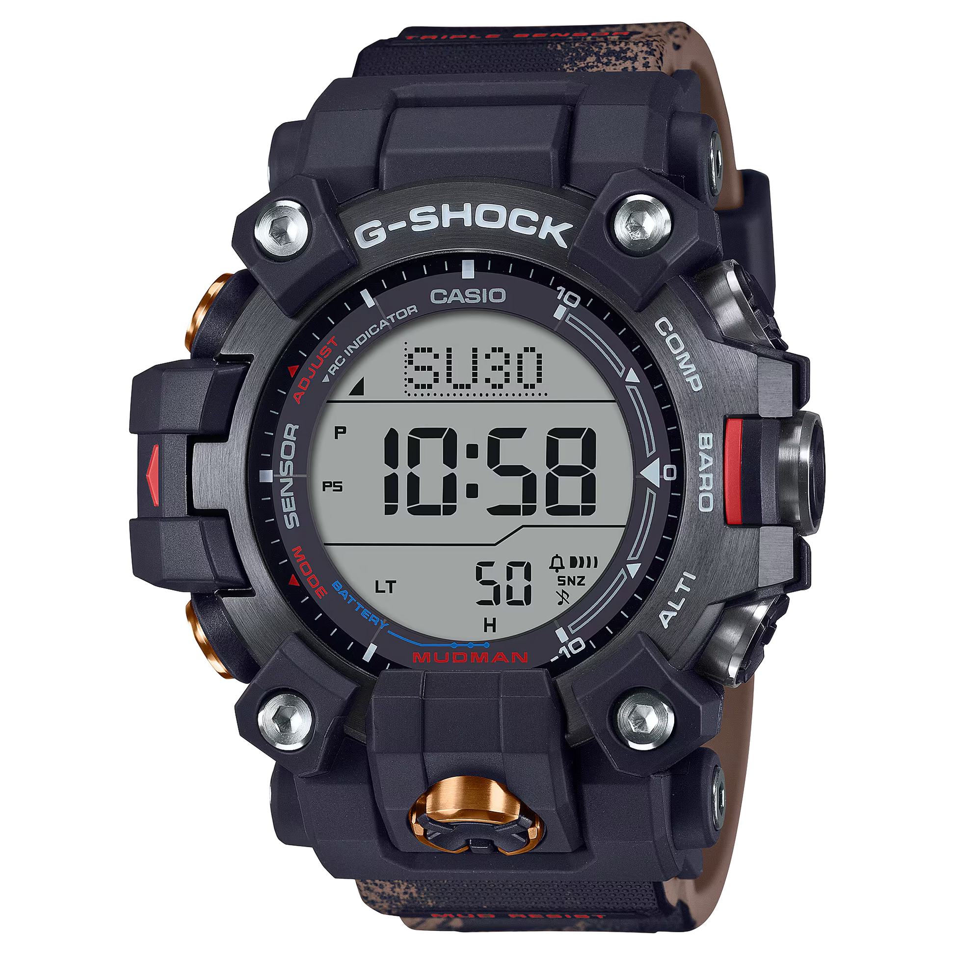 Take on any outdoor adventure with this rugged timepiece, the result of a collaboration between Casio and Toyota. The MUDMAN GW-9500TLC-1DR, with its Carbon Core Guard structure and duplex LCD, is built to withstand the toughest conditions. Featuring a sand-colored band inspired by desert racing.
